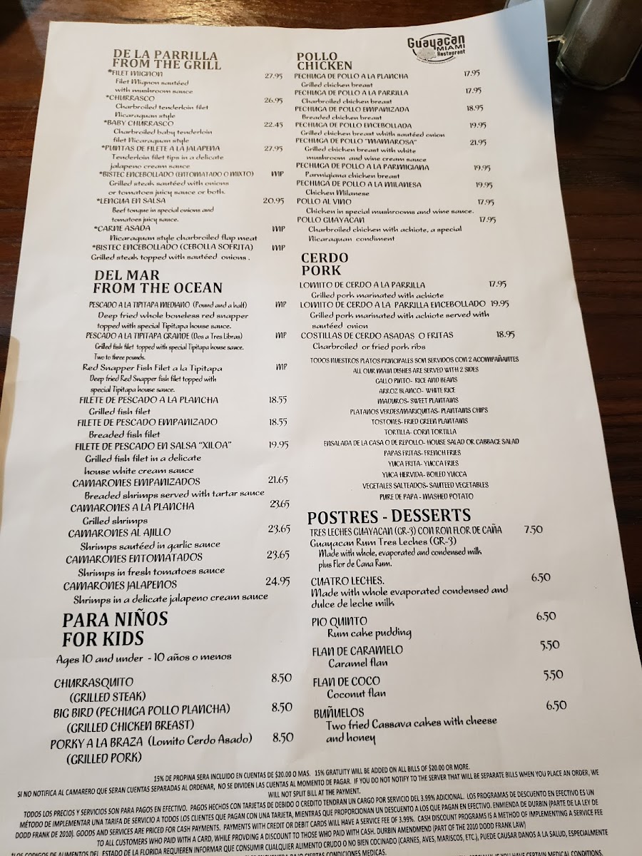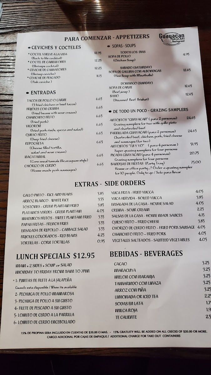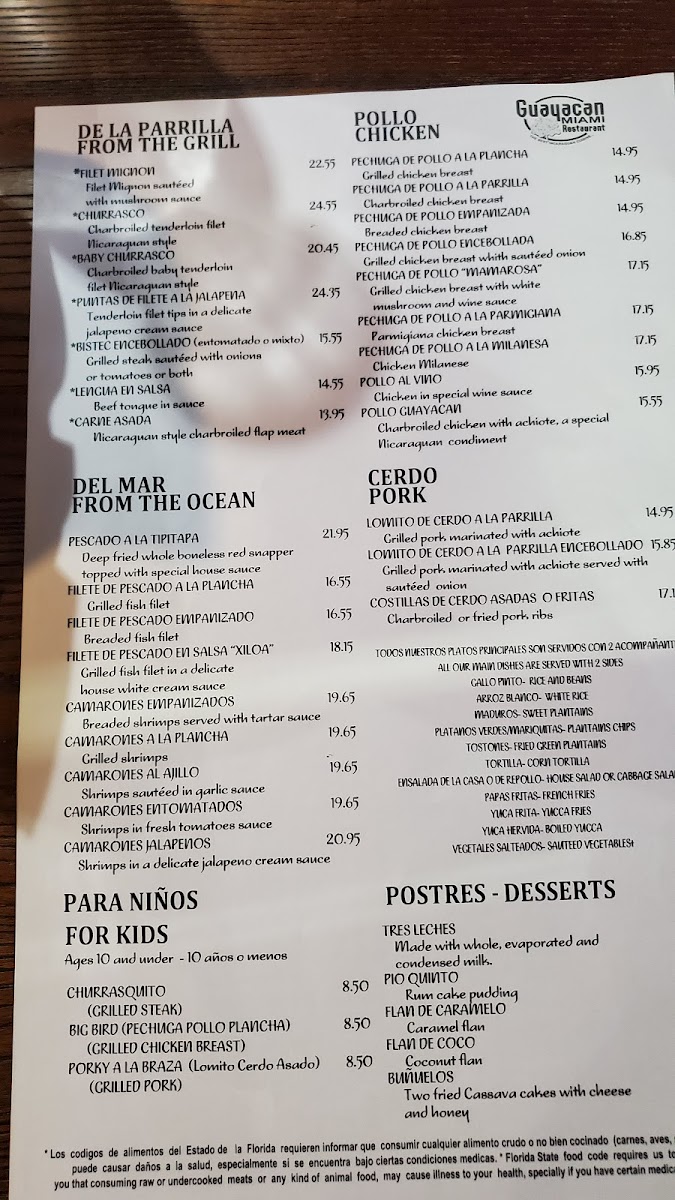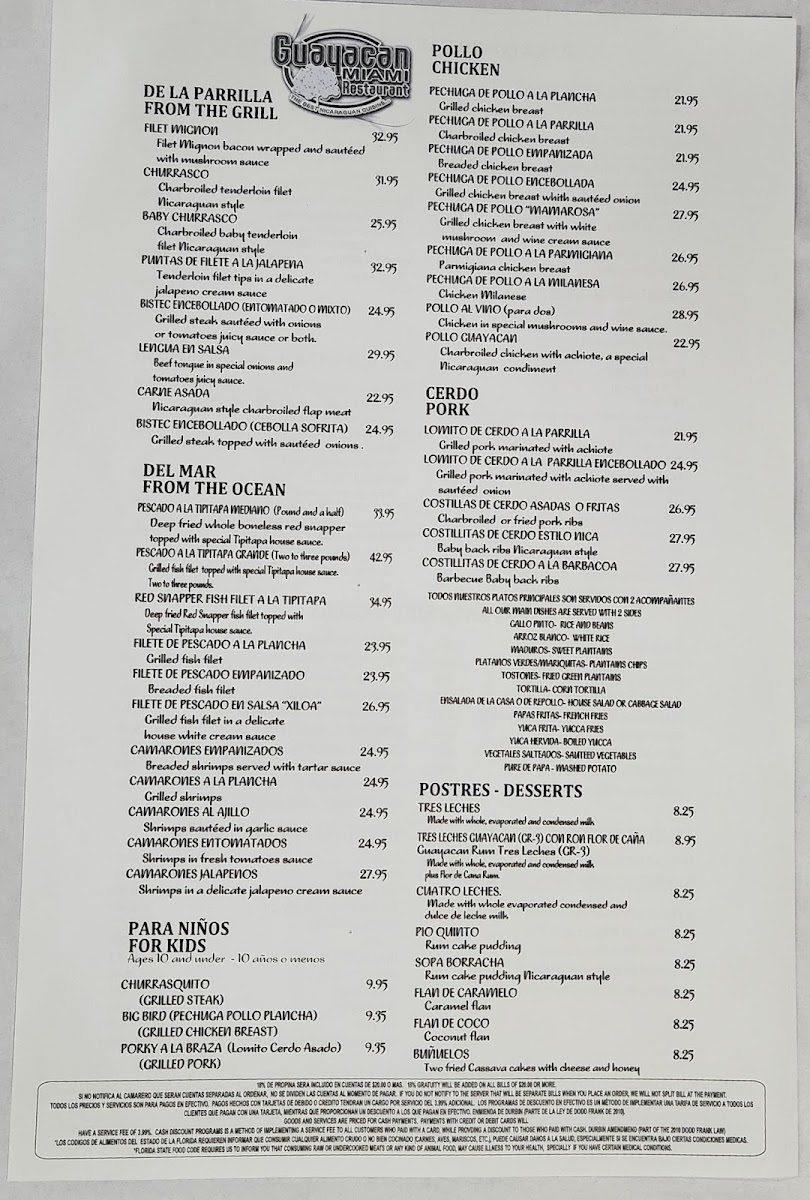 Welcome to Guayacan Miami Restaurant, a hidden gem nestled in the heart of Little Havana. Here, you can indulge in the rich and vibrant flavors of Nicaraguan cuisine, expertly crafted to deliver an authentic dining experience. The menu boasts a delightful array of dishes, from the succulent Lomito De Cerdo A La Parrilla to the mouthwatering Parrillada para 2, which promises a generous feast perfect for sharing.