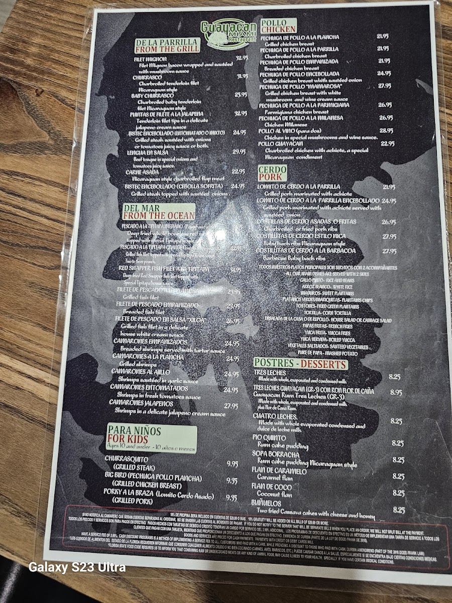 Seafood lovers can savor the exquisitely prepared Camarones Al Ajillo or Camarones Jalapenos, each bursting with flavor. Don't miss out on the delectable desserts, like Guayacan Rum Tres Leches and the classic Flan De Caramelo, which provide a sweet finish to your meal.